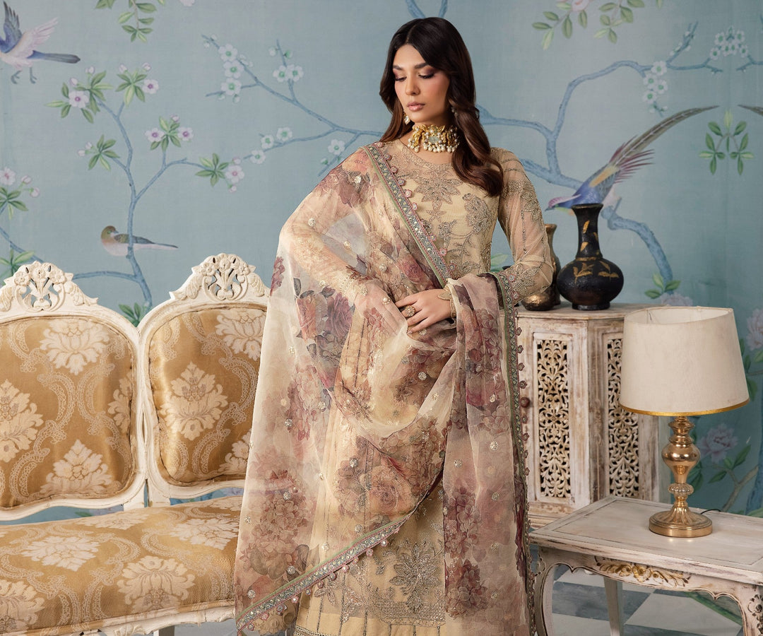embroidered organza dupatta, this ensemble is a harmonious blend of tradition and contemporary style.