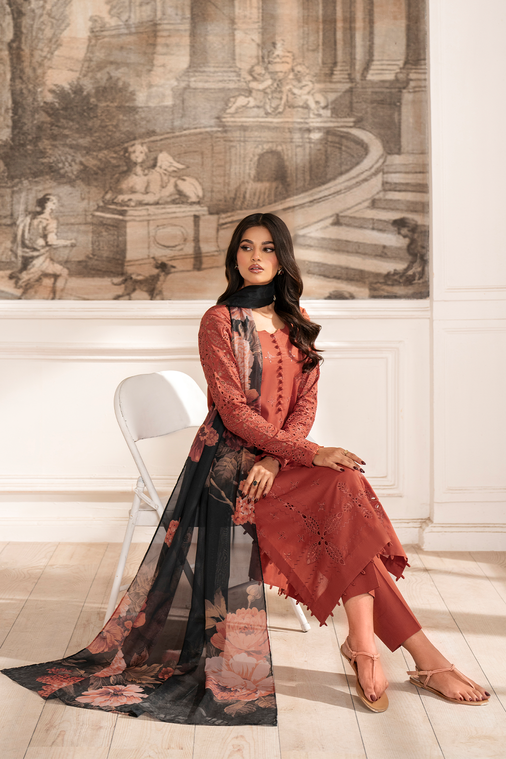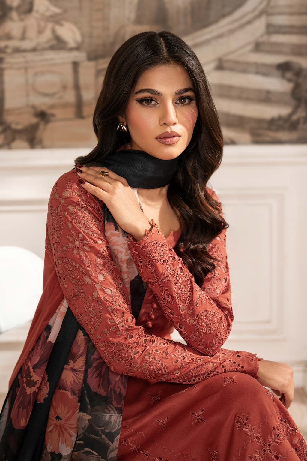 Shirt Front: Borer Embroidered LawnShirt Back: Dyed Lawn