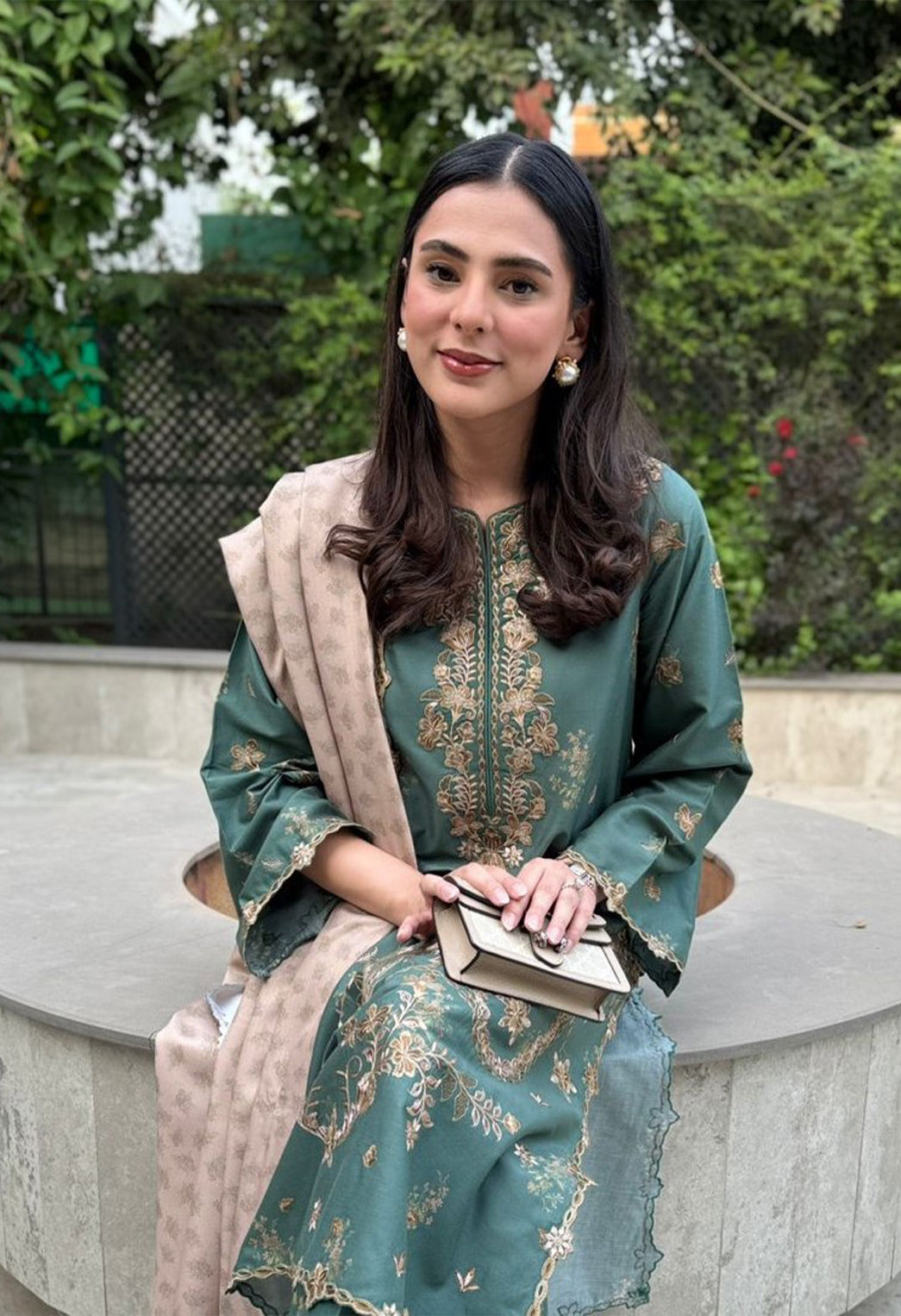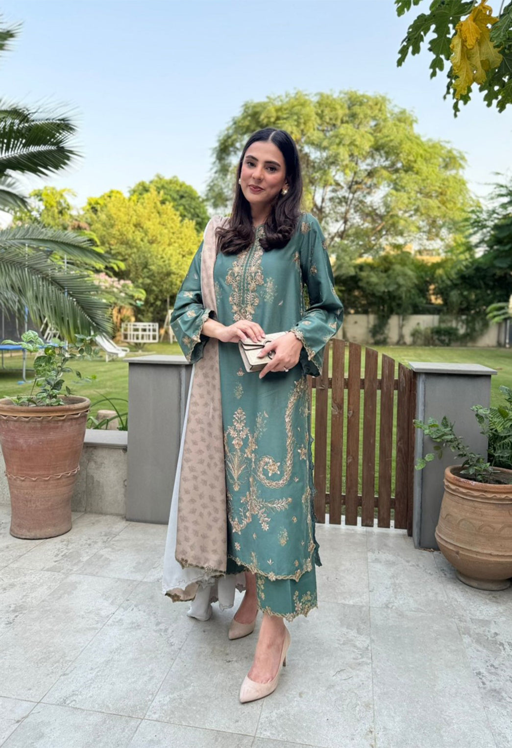 This standout piece from our Pre-Fall Collection combines classic charm with modern ease. The printed viscose linen shirt features an embroidered cambric neckline, front and back lace, and embroidered sleeves, paired with a printed trouser and a printed woven shawl with embroidered lace for a relaxed yet refined look.